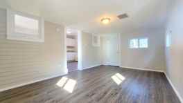 A fully remodeled house on Lake Avenue with brand-new appliances and a 7-car garage provides a fresh and modern feel with 2 spacious bedrooms, a large living room, a separate dining area, and a bathroom with a walk-in shower. The kitchen in this unit is large enough to fit all new appliances with ample cabinet space and still room to spare. New windows throughout the apartment provide sufficient natural light, and the new laminate flooring offers durability and easy maintenance.