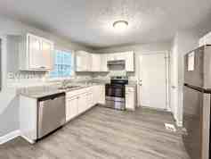 This spacious home, available for rent, features three comfortable bedrooms and one bathroom within 1,736 sq. ft. The functional kitchen comes ready with essential appliances, including a refrigerator, dishwasher, and electric range, simplifying meal prep and clean-up. For a comfortable environment all year, the home is equipped with central heating and air conditioning, and the interior is styled with attractive, easy-to-maintain wood plank floors.