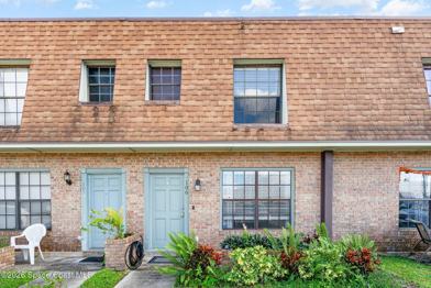 This adorable two-story townhouse is ideally located just off Palm Bay Road, you're close to shopping, dining, and a short drive to the beach. Inside, you'll find two spacious bedrooms upstairs-each with its own private bathroom. The primary suite features a sliding glass door that opens to your own personal NEW deck. A convenient half bath is located downstairs. Step out the back sliding doors and you're just steps away from a beautiful, sparkling community pool. Downstairs has brand new flooring. Two dedicated parking spaces are located right outside your front door, and hurricane panels offer added peace of mind. With a smart layout, great amenities, and a central location, this townhouse is a fantastic opportunity you won't want to miss.
