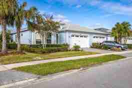 REDUCED for Immediate occupancy! $2,950 per month! Furnished and ready to move into! Short stroll to all amenities, walking trail, and Beach Club Tram from this gorgeous Phase 1 Nevis Villa with 2 bedrooms, bonus room, and den! Enjoy the outdoors with motorized screens on the lanai and front porch. Tile floors, soft close cabinets, granite, marble and porcelain counters throughout. Kitchen with pantry and plenty of 42'' upper cabinets. Home was renovated in 2024 to include counters, light fixtures, and barn door separating living area from bedrooms. Master bath boasts marble counters with square Kohler sinks, new zero entry shower floor, and rain shower head. Kohler transition bars in baths. Very private backyard oasis! Amenities include beach entry pool, restaurant, bar, fitness center, theatre, dog groomer, hobby centers, pottery and wood working studios. Free live performances at town square. Live life like a song! Furnished.
