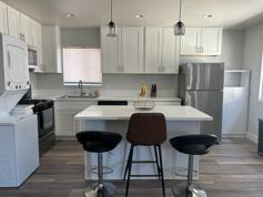 Can be fully furnished with 2 queen beds, comfortable L couch, 55" smart TV, fully-stocked kitchen, and more! Each bedroom has brand new, high-quality mattresses, comforters, pillows, and sheets! Work desk and chair in the master bedroom.