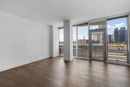 This beautiful south facing apartment is a real gem. The F line is the best one bedroom layout in the building. The entire apt is lined with floor to ceiling windows, which let in a great amount of natural light all day. The large open living room allows for a separate dining area or home office, a luxury in today?s world. The open chef?s kitchen is great for entertaining and comes equipped with top of the line Liebherr and SMEG appliances, white pine custom Italian cabinetry, and a Corian countertop that also serves as a breakfast bar. The bedroom easily holds a queen size set and has two large side by side closets. The bathroom is cast in a color palette of gray, light wood, and crisp white. It features energy efficient Darius Design fixtures, a recessed medicine cabinet, and a deep soaking tub. Wide plank oak hardwood floors throughout. Central air provides the heating and cooling. Washer/dryer in unit.
