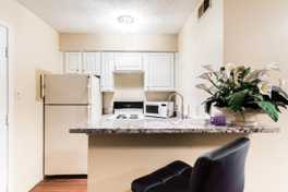 Oak Creek 3rd floor 1 / 1 condo in quiet gated community with remote access, new stainless steel kitchen appliances, stacked W/D, wood plank flooring, remote control ceiling fans, central air, access to pool/sauna/gym/clubhouse/racquetball court, covered parking, modern exterior landscaping, large open courtyard/picnic areas/park, balcony, cable ready, HOA/water/sewer/trash paid.