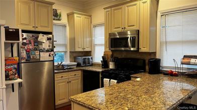 Turn key 2nd floor apartment with private front entrance. Open layout eat in kitchen with sliders to large outside upper deck. Full dining and living area. Master bedroom suite with full bath and 2 additional large bedrooms with a full bath. Laundry room and pantry too. All updated.