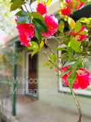 The main house includes three bedrooms, with the front bedroom currently set up as an office with built-in shelving, yet still spacious enough to accommodate a bed. The bathroom features double sinks and a bathtub/shower combo. Two additional bedrooms are located down the hall. The laundry room, conveniently situated next to the kitchen, offers abundant storage and pantry space with hookups to connect your washer and dryer.