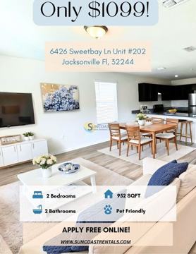 BE AWARE of potential fraud. If you suspect one of our properties being listed fraudulently, please email: **** Suncoast Property Management does NOT ask any of our potential residents to wire funds. Our main office is located in Jacksonville, Florida and you can visit our website to verify any rental listing