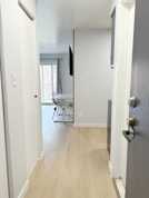The large, sunlit bedroom is thoughtfully furnished for your comfort, creating a cozy and inviting retreat. High ceilings, elegant wainscoting, and contemporary finishes throughout add a touch of sophistication to the space.