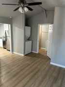 1 bedroom, 1 bath, super studio. Full kitchen with stove, refrigerator, freezer, dishwasher and microwave. Large bedroom/studio area and large bathroom with roomy, walk-in shower. Studio apartment also comes complete with stackable washer and dryer. Back patio and fully fenced with secure entry gate and private driveway and parking space. Must see to appreciate.