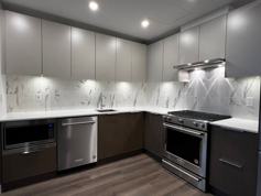 As you enter the home, you’re greeted with the open kitchen and living room. Equipped with Kitchen Aid & Bloomberg appliances, including an over sized 5 burner stove oven. The bedrooms are on opposite sides of the home, maximizing privacy and the master bedroom is complete with a spacious walkthrough closet and an ensuite with ample shelving storage. Laminate flooring throughout, making it very easy to clean.