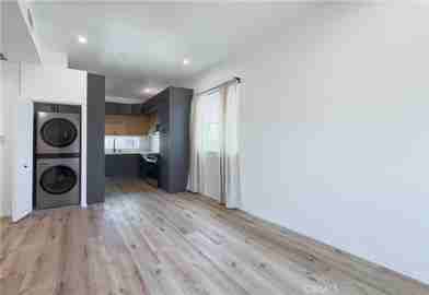 Standing three stories over a celebrated neighborhood in Ramparts Village, this ambitious 1,251 sq ft townhome is the quintessential Modern Residence. Delivering the utmost in luxury and exclusivity, this three-bedroom, two bath Townhome gazing out across the dazzling Hollywood landscape presents a rare new construction homeownership opportunity. A truly astonishing accomplishment of engineering and architecture, the open-plan layout blends premium craftsmanship with exceptional finishes. Exhibiting a stunningly executed design, every inch of this sumptuous space has been meticulously crafted for sophisticated living. Dominated by khaki-hued hardwood floors and crowned by elevated ceilings with integrated lighting, the elegant living room and dining room are vibrant entertaining venues. Rich in high-end finishes and fixtures, the kitchen is a first-class workspace. Characterized by a superior standard of quality, no expense was spared to achieve this epicurean’s delight. Amenities include chic matte cabinetry and professional series appliances. Complemented by a beautifully appointed bath, the primary suite dominates the lower level. Outstanding accommodations continue in the additional guest rooms, which can efficiently function as home offices or fitness areas. A full-width roof deck is positioned to capture miles of twinkling L.A. lights. Bike storage, a rock garden, secure parking and keyless entry provide the finishing touches. The enviable location takes full advantage of its proximity to thriving business and cultural scenes in adjacent Silverlake, Koreatown, and Westlake. Dodger Stadium and L.A Live can be reached in 10 minutes, while upscales boutiques along The Grove's promenade are just a 19 minute commute.