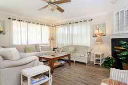 Enjoy cooking your favorite family meals in the well-equipped kitchen without missing a precious family moment. The spacious open concept floor plan enables you to be included in the action whether you are preparing a meal, playing a board game at the table, or just relaxing on the couch and catching up on a favorite TV show. The kitchen offers updated granite counter tops and tons of counter space to prepare meals, bar seating for 7 people, and flows easily to a dining table that can accommodate 6 people. Fresh new wood flooring and a cozy sectional sofa welcome you to the living room. This is a great place to unwind after a busy day or you can grab a seat on one of the rocking chairs that is placed on the street side covered porch.