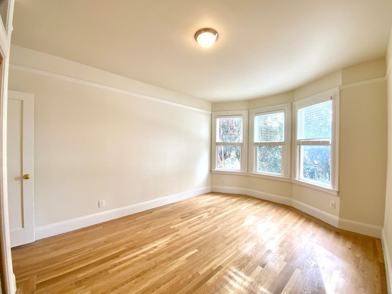 REMODELED 1BR in Western Addition. This unit features new hardwood floors, bay windows, high ceilings, and extra closets space. The kitchen boasts brand new stainless appliances (including a dishwasher!), ample counter/cabinet space, and a tiled backsplash. Laundry is on-site and the backyard is shared. The unit is located in the back of the building, so it is removed from the street noise. Large and bright!