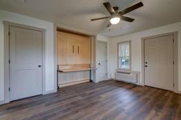 -These thoughtfully designed studios feature a custom solid wood Murphy bed that folds down into a comfortable queen bed at night and converts into a functional study nook during the day. This smart layout allows the space to feel like a true living room during daytime hours. Each unit includes a brand-new kitchen, new appliances, a fully updated bathroom, and modern fixtures throughout.