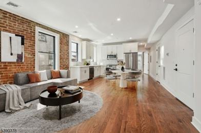 Brand new never-lived-in unique renovation with the highest quality sophisticated materials and intelligent choices for an elegant lifestyle with a fabulous open layout. Amazing features in this 918 square foot apartment include high ceilings, double insulated custom windows, meticulously restored original brick walls, new oak hardwood floors, craftsman white wood cabinetry, white quartz countertops, stainless steel undermount sink, GE French door refrigerator, gas range & dishwasher, white tile backsplash, custom outfitted closets, custom window shades, solid wood doors. Bedroom One en suite to full bath with sliding barn door to stall shower, polished nickel light fixture, custom outfitted walk in closet. Bedroom Two offers exposed brick wall with antique brick chimney wall, custom outfitted walk-in closet, door to rooftop and fire escape access. Full bath with pocket door, shower over tub and exposed brick wall. Stacked washer/dryer. Utility closet with forced air furnace, hot water heater, Central Air Conditioning. FIOS available. Pet rent $50 for one pet. Amazing location in the heart of downtown Millburn - steps to South Mountain Elementary, one block to Millburn Middle School & three blocks to Millburn High School. One block to NYC train, two blocks to Paper Mill Playhouse, and set amongst all the fabulous restaurants, shops, and amenities that make Millburn one of the most desired towns in NJ.