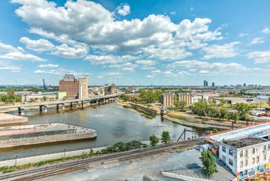 Located in the magnificent Griffintown district with a splendid view of the Champlain Bridge and the Lachine Canal.