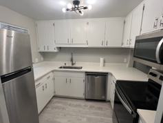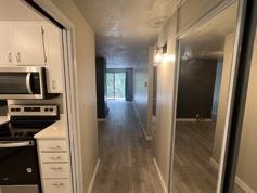 This updated 2-bedroom, 1-bath apartment is located in the beautiful hilly area of South Eugene. The unit features modern upgrades, including quartz countertops in the kitchen, a stove, built-in microwave, and an in-unit washer and dryer for your convenience. The bathroom has been tastefully updated, offering a contemporary feel.