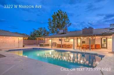 3322 W Mardon Ave is a 5 bedroom, 4 bathrooms apartment for rent. It is located in Las Vegas. It has apartment amenities including ceiling fan, outdoor space, central heat, in-unit laundry, furnished, deck, assigned parking, walk-in closets, dishwasher, air conditioning, fireplace, microwave, and high ceilings. Cats and dogs are allowed, making it a pet-friendly apartment.