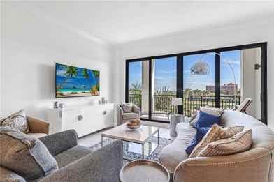 Experience the very best of Naples living in this beautifully appointed two-bedroom, two-bath residence in the heart of Naples Square. Designed for both comfort and style, this light-filled condo features a chef's kitchen with gas range, sleek finishes, and high-end designer furnishings throughout. The open-concept floor plan is ideal for modern living and entertaining, offering abundant natural light, split bedrooms for enhanced privacy, and a separate laundry room for everyday convenience. Step onto your private balcony to enjoy peaceful moments-perfect for morning coffee or an evening glass of wine-then take a short walk to the newly opened Naples Playhouse and the vibrant downtown surroundings. Residents of Naples Square enjoy resort-style amenities, including a sparkling pool, state-of-the-art fitness center, and beautifully landscaped grounds. All of this is just steps from Fifth Avenue's world-class dining and shopping, white-sand beaches, and the Naples Design District, making this an unbeatable location for year-round or seasonal living. AVAILABLE FOR ANNUAL OR SEASONAL LEASE