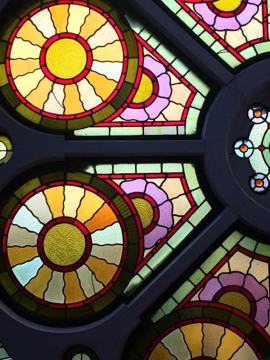 Large apartment on 3 floors in a renovated stone church. Unique, one of a kind apace. High ceilings, stained glass windows, beautiful woodwork. Parking available.