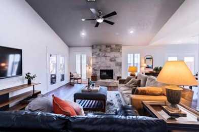 Inside the home, you'll find everything you need for a comfortable stay. The open floor plan features modern furnishings, high-speed Wi-Fi, and a cozy fireplace to make you feel at home. The fully equipped kitchen includes modern appliances, perfect for cooking meals during your stay. The three spacious bedrooms provide privacy, with the master suite featuring an en-suite bathroom for added convenience. A washer and dryer are included for easy laundry, and central air and heating ensure year-round comfort.
