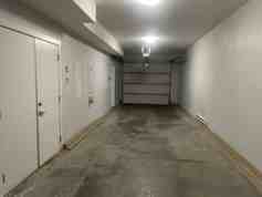 The large tandem garage fits two cars in a row with a plug in for an electric car and a flex area for a gym or storage space. The small back patio is landscaped with concrete pavers and no grass.