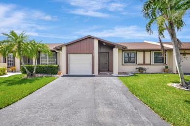 Welcome to Las Verdes, gated community, This 3-bedroom, 2-bath villa, home comes unfurnished with a 1-car garage includes extra storage shelves & 2 parking spaces, tile flooring throughout the living area, and hardwood in the Florida room. Enjoy your rear patio with serene lake views. Washer and dryer included, Accordian shutters on all windows and sliding doors. Community offers multiple pools, a Jacuzzi, sauna, racquetball court, tennis, and a walking path. Centrally located, approx. 6 miles from the beach, and walking distance to shopping and Delray Medical Center. SHOWINGS WILL START 10/8/25. Apply today!