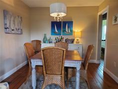 Available for lease, this charming 2-bedroom, 2-bathroom home is perfectly positioned along a peaceful canal with direct access to Blackburn Bay. Located just minutes from the Intracoastal Waterway and the Gulf of Mexico, its tranquil setting is ideal for those who appreciate the beauty of waterfront living. Step inside to discover an interior that emphasizes comfort. The vaulted ceilings create an inviting atmosphere, while the kitchen features recessed lighting and granite countertops. The dining area seamlessly connects to a bright and spacious lanai through French doors, making it perfect for indoor-outdoor entertaining. The lanai itself is a highlight of the home, boasting tile flooring, a wood-paneled ceiling, and expansive views of the canal.