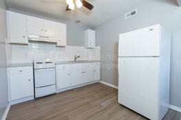 This one-bedroom apartment features wood-like click flooring, fresh paint, and shades throughout as well as granite countertops.