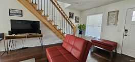 Available 6/1/26, this fully furnished, recently renovated classic bungalow is situated in the convenient & historic Maple Heights neighborhood. Just blocks from Butler Park, downtown, IU, City Hall, The Mill, Upland Brewery, B-Line Trail, & Bloomingfoods Market. This 1 1/2 story, 3-bedroom, 3-bathroom home, with its tall, double-glazed windows, spacious rooms, & top-quality materials & finishes, offers pleasant, well-lit living spaces with mocha finished, maple hardwood floors throughout. The open floor plan is designed to be inviting & great for entertainment. The kitchen features shaker soft close cabinets, stainless steel appliances & a high ceiling with inlaid skylight. Two of the BRs are on the main level. The first is a spacious master with a walk-in closet & ensuite. The second is situated to the rear of the home with access to a conveniently located full guest bathroom. The laundry room is also located on the main level. As you ascend the open wooden staircase, you will find the third bedroom. It is a masterfully done attic conversion, complete with hardwood floors & ensuite. The large, inviting covered front porch adds an extra 168 SF of outdoor living space. In the back, is a 220 SF wooden deck that overlooks a very large partially fenced, low maintenance back yard. This home offers a sunny interior, with all the charm of an older home & the convenience of new custom crafted quality.