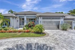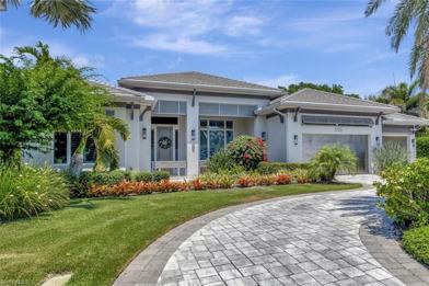 Welcome to 555 Mooring Line Drive, a stunning single-story estate home custom-designed for the ultimate coastal lifestyle. Nestled within the prestigious Moorings community, this 4-bedroom masterpiece spans over 4,200 sq. ft. and rests on a lushly landscaped lot, promising an unforgettable Florida getaway. A grand circular driveway sets the stage for your arrival. Step inside to discover sophisticated design and premium finishes throughout. The open-concept layout seamlessly blends the great room, dining area, and chef's kitchen under breathtaking 17-foot beamed ceilings. A striking wall of floor-to-ceiling glass doors connects the interior to an expansive outdoor living space, featuring a comfortable sitting area, fireplace, dining area, and outdoor kitchen. Enjoy the 42-foot heated pool with cascading waterfall features, a whirlpool spa, and a spacious sun deck. The primary suite offers private access to the pool and spa, along with a double walk-in shower, soaking tub, and extra-large walk-in closets. Each of the three ensuite bedrooms is thoughtfully furnished: one features a queen bed with full-size bunk beds, while the others are outfitted with king beds. Additionally, a spacious office adds versatility, making it ideal for working remotely or catching up on emails. Located just minutes from Naples' world-class beaches, this smart home is not only a sanctuary but also a rare find in one of Naples' most sought-after neighborhoods. A short drive away, discover the vibrancy of Downtown Naples' 5th Avenue South, where exceptional dining, live music, theater, art fairs, car shows, galleries, and upscale shopping await.