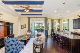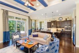 SEASONAL RENTAL 2026. Beautifully furnished and designed single family pool/spa home in the Verandah. Three bedroom, 2.5 bath former Kolter Homes Anna model offering a very inviting floor plan with custom details throughout. 12ft ceilings, 8ft interior doors, hickory wood flooring, kitchen with 42 cabinets, granite counters, stainless appliances, gas cook-top and wall oven, and butler's pantry. Master suite features his-and-her walk-in closets, large en-suite bathroom with double vanities, soaking tub, and separate shower. The private screened lanai offers an auto fill custom Pool with elevated jetted Spa. Other features include Hurricane Impact glass, built in surround sound, mature landscaping, and brick paved drive ay and lanai.