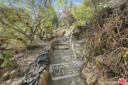 Welcome to Fairy Land. Hidden behind gates, Haven Villa is your secret paradise on a quiet street in Fernwood. This graceful property is set in magical, boulder-strewn gardens. Breathe deeply; bright flowers, native plants, and fruit trees tumble across the bold rock formations, scenting the cool coastal breezes. Enter through doors flung open to spacious patios, a flat yard, and a sunken courtyard. Craftsman and French country touches mingle to up the ante on the charm. Wood-paneled ceilings, wide view windows, and a massive handbuilt, petrified stone fireplace draw you into the wide open living room. Rooms flow effortlessly across gleaming oak floors. The exquisite newer kitchen, with honed Soapstone counters, high end appliances, and a farmhouse sink is open to the generous dining room. Enjoy your guests, your view of the mountains, and your windowed pantry, as you while away the hours in culinary creativity. You'll mostly use the dining room entry, but the mudroom has a wide window seat with huge windows looking out over the verdant yard and the 3 story Swiss Family Robinson tree house, with a sleeping loft and operable skylights. Curl up with a good book and watch the birds flit amongst the greenery. You'll be distracted by the mountain views from your bright, main floor office. Upstairs the primary suite beckons. High-beamed ceilings shelter, and a wall of custom built closets are topped by clerestory windows, bringing in the sky. The air conditioning holds the summer heat at bay. Sunshine pours into the remodeled bathroom suite. A shower room built for 2, with a long teak bench, is to one side. Turn it into a blissful sauna with the steam bath feature. The water closet is to the other side with a built-in bidet with a heated seat to up the comfort. The wide room in between has a dual vanity, a linen closet, and canyon views. Downstairs, 2 more bedrooms, a laundry, and an updated full bath round out the main house. Stone paths, steps, and walls wend through the rugged landscape. A large entertaining deck perches nearby, shaded by a wood pergola, wisteria, and bougainvillea. Nestled near the top of the property, a studio guest house with kitchen, bath, and wood burning stove, basks in cross canyon views. Nearby a viewing spot with Adirondack chairs awaits in the shade of an old pepper tree. Drink your morning coffee or sip your cocktail as you watch the Dragon's Breath fog move up through the canyon. A fully enclosed raised-bed garden protects the tomatoes and basil from the critters. A shed sits nearby to hold all of the garden tools. There is a carport. At night, landscape and deck lighting enhance the magic for entertaining, creating an evening fairy land. Everything is nearby: the center of the canyon with shops and cafes, the parks and trails, the beach, Malibu, the valley, and the wider city. You can take off to anywhere from here. But here is as wonderful as anywhere else you might go. Stay a while.