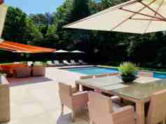 Rental Registration #: 24-1411 Extensively renovated and expanded home on 1.6 secluded and landscaped acres with heated gunite salt water 20x40 pool surrounded by sandstone patio and full Renovation Hardware furniture and Weber gas grill. Setting is complemented by separate Zen Garden sitting area with fire pit and sunken hot tub, as well as an outdoor shower. 6 bedrooms and 6 1/2 baths, including two second floor masters bedrooms... one with suite sitting area and spa bathroom and other with full ensuite, two main floor masters with en-suites, two lower level bedrooms with two separate full bathrooms. Two lower level bonus/exercise rooms. Main floor features open plan living with double height living room with free standing gas fireplace leading to open plan dining room, and opening to professional kitchen and family room/home theater. CAC, natural gas, W/D, full house de-humidification and humidification system. Music system throughout house and grounds. Very close to Jitney and local fish, bagel, wine stores, and only 1.5 miles to pristine beach. Listing ID:876185