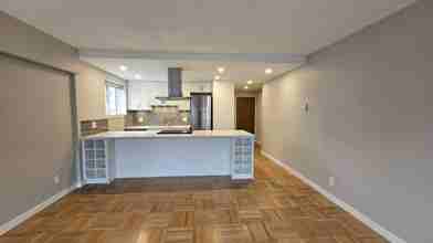 This bright and spacious 525 sqft large studio plus den is located on the 1st (ground) floor, offering views of Nelson Street. The open-concept kitchen and living area feature high-quality quartz countertops, bespoke built-in storage, stainless-steel appliances, including a dishwasher and lots of space for all your storage needs. The bathroom also features plenty of additional storage. This unit has stunning hardwood flooring in the living area and den and vinyl flooring in the bathroom and kitchen. Building amenities include an elevator, outdoor parking and additional storage lockers (available for a fee), and secure bike storage, which is included for your convenience.