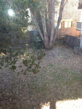 Two sunny bedrooms overlook private backyard. Bathroom with shower over tub. Separate dining room leads to kitchen equipped with stove, refrigerator, double sink with garbage disposal. Separate entry/exit in kitchen leads to small deck with access to large shared backyard.