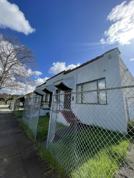 -Kitchen with refrigerator, gas stove, and space for a small table and chairs.