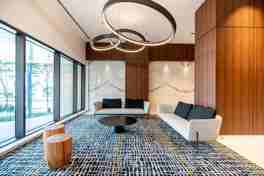 Inside, you will find luxurious finishes and high quality materials. A roomy kitchen with Italian cabinetry, stainless steel Bosch appliances, quartz countertops and an island with an integrated dining table. The two bedrooms are separated for added privacy and convenience. Full size side by side washer and dryer closet with ample storage. It is contemporary living at it best.