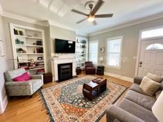 Stainless steel fridge, stove/oven (gas), microwave, dishwasher, washer/dryer, window A/c units, off-street parking, forced air gas heat, patio, fireplace, cable ready, hardwood floors, fenced yard