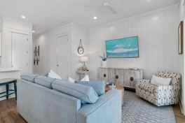 Prominently positioned just a few homes back from the renowned turquoise hued waters, 63 Sawgrass is the idyllic retreat perfect for those Seaside getaways. Nestled in the private enclave of the Cottages at Seagrove, this residence offers a stately paver driveway leading to a charming coastal façade. The heart of the home immediately welcomes you with a sophisticated living space meticulously designed for both relaxation and entertainment. The gourmet kitchen encompasses custom cabinetry coupled with stunning quartz countertops, an oversized kitchen island with integrated seating, and a luxury appliance suite with a gas range. The first-floor primary is graced with natural light and offers a beautifully tiled wet room with soaking tub and walk-in shower. A second floor living area, a true rarity throughout the local market, offers a seating area with TV and is the perfect place for additional lounging quarters. Two spacious guest suites with ensuites and an additional primary suite overlooking the community's lush vegetation complete the second level.
