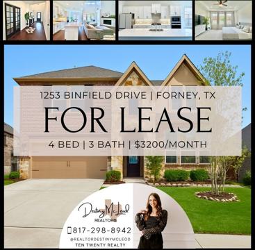 Modern Comfort Meets Family-Friendly Space — Your Dream Rental in Devonshire, Forney! Step into spacious elegance and smart design in this stunning 4-bedroom, 3-bathroom home nestled in the desirable Devonshire community. With over 3,000 sq ft of thoughtfully designed living space, this home is perfect for families, professionals working from home, or anyone who wants room to spread out and live comfortably. Just 25 minutes from the heart of Downtown Dallas and moments from the sparkling waters of Lake Ray Hubbard, this beautifully crafted home puts you at the center of it all—close to the shopping, dining, and entertainment of Rockwall, Heath, and Forney, yet tucked into the peaceful, resort-style community of Devonshire. Main Floor Features: A private home office ideal for remote work or study A guest bedroom + full bath tucked away for privacy A serene primary suite with soaking tub, dual vanities, walk-in closet, and separate shower Chef’s Kitchen & Living: Open-concept kitchen ...