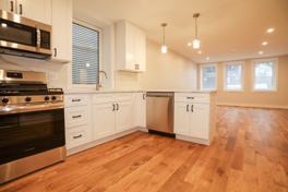Gorgeous Fully Renovated 2 Bed, 1-bathroom Condo Quality. New kitchen with quartz counter tops & large peninsula, stainless steel appliances including built in microwave and real hood over gas stove. Open concept floor plan. Hardwood floors. Laundry in-unit. $400 per Person Move-In Fee. $400 Pet Fee, no aggressive breeds. 1 parking space available $150 monthly