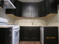 The apartment has stone floor, recessed lights, and crown molding. The kitchen has beautiful cabinets and glass tile backsplash. The bathroom has submarine tiles.