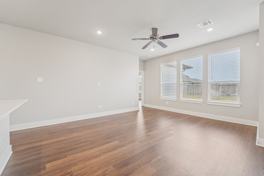 Natural light pours into the open living area, enhanced by rich wood-style flooring and ceiling fans throughout for year-round comfort. The home comes complete with a washer and dryer, so you're move-in ready from day one.