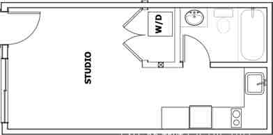 Open-concept studio layout with modern finishes