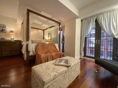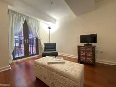 Hardwood throughout. Entry hall with storage closet as well as spacious double wide utility closet. Galley kitchen with tons of cabinet space. Granite counters with under the cabinet lighting. Stainless appliances. Dual washer/dryer in unit. Studio space features a wall mounted tv with lounge seating. Dining table with two contemporary chairs. Beautiful full size bedset. Bathroom features marble tile floors with full tub and a spacious vanity counter with plenty of storage space. Parc Rittenhouse is a 24-hour doorman building, featuring a landscaped 7th floor rooftop area with outdoor pool and sundeck, an on-site community room, conference room, media room, and state-of-the-art fitness room. On-site valet parking is available for additional monthly fee. Move-in fee required for building. Small pets welcome.