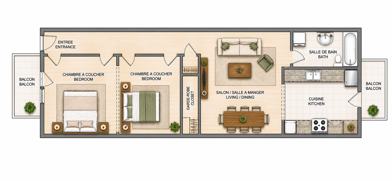 coucher fermées. Cuisine et salle à manger/salon à air ouvert,