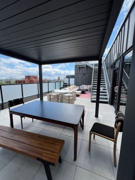 • Sur le toit: salle de détente, grande terrasse avec gazebo, pelouse et belvédère avec vue spectaculaire sur le centre-ville et le pont Jacques-Cartier, idéal pour admirer les feux d’artifice en été!
