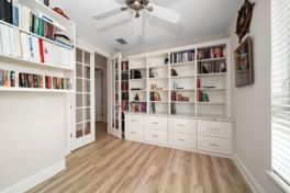 • A guest bedroom with a queen-size Murphy bed and private en-suite • A third bedroom with an adjacent full bath • A versatile office/study with custom floor-to-ceiling built-ins and French doors—can be used as a 4th bedroom • Ceiling fans in all bedrooms • Cat5 network wiring throughout • Kayak launch and marina access with no fixed bridges to Tampa Bay
