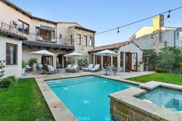 Outside, a private resort-style retreat awaits. A sparkling pool and serene spa anchor the outdoor living experience, creating an idyllic backdrop for sun-soaked days, sunset cocktails, and starlit nights. Set on an approximately 9,990-square-foot lot, the grounds offer ample space for entertaining, relaxation, and enjoying the ocean air.