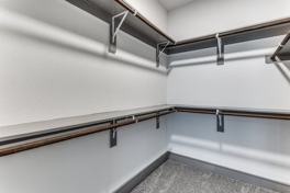 Oversized closets with wood shelving